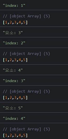 myArr.forEach((currentElement, index, array) => { console.log(`요소: ${currentElement}`);